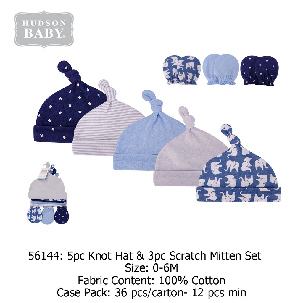Hudson Baby 5pc Knot Hat & 3pc Scratch Mitten Set 56144