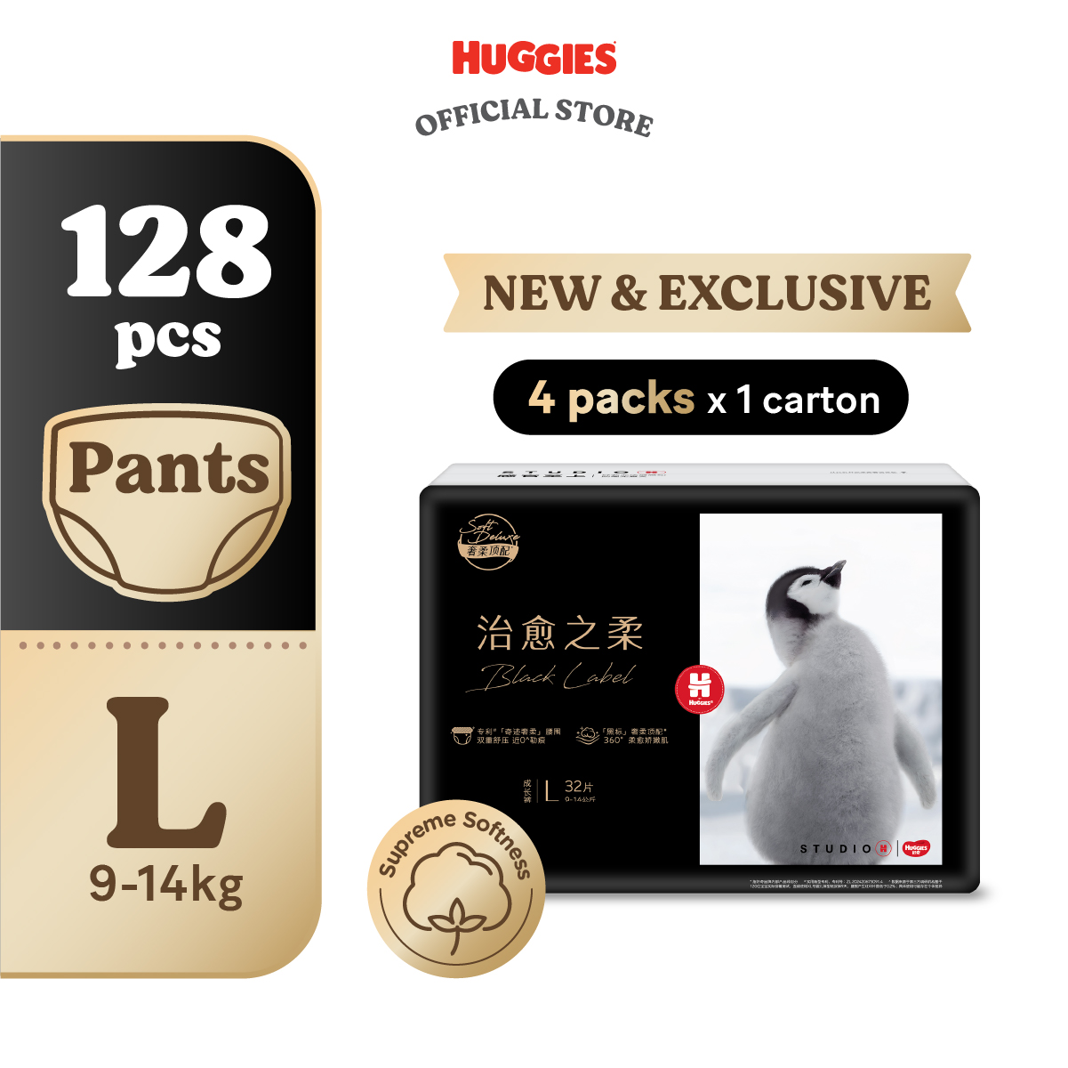 Huggies Black Label Diapers M36/L32/XL28/XXL24 (4 packs) - Ultra Premium Baby Diaper with Supreme Softness