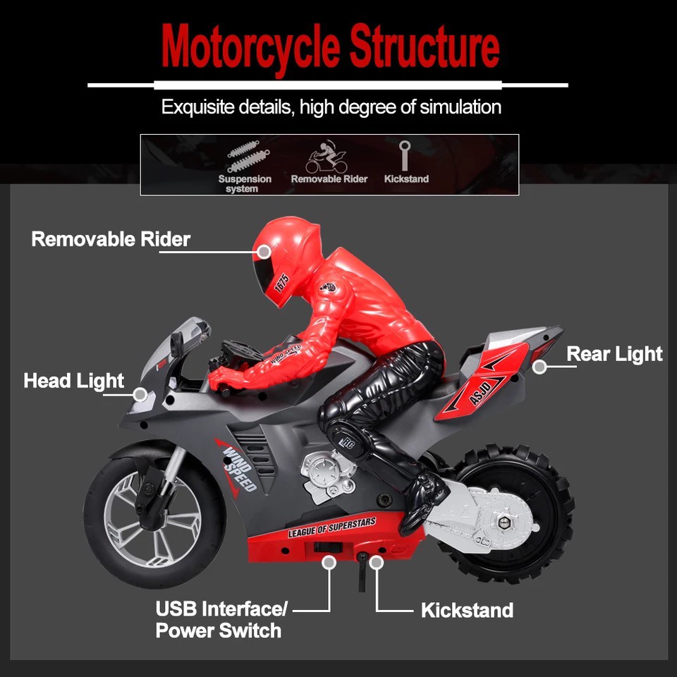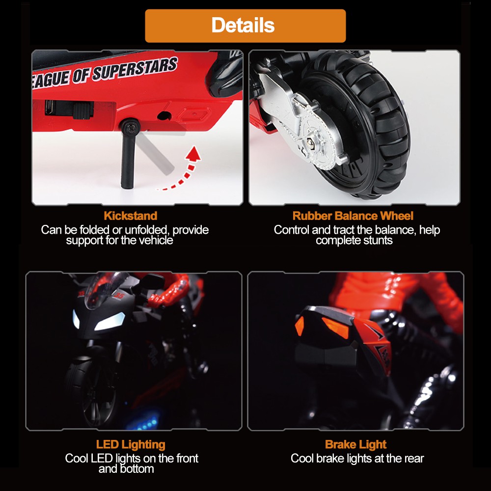 Huican HC810 Rc Bike Auto Balance Rc Motorcycle Remote Control Bike 6 Gyro 360 Stunt Car Mainan Budak 1:6 35cm