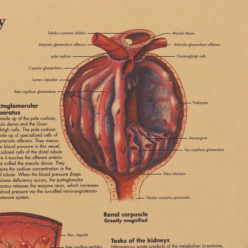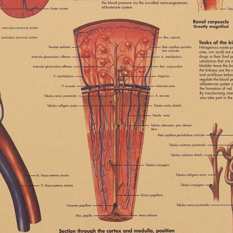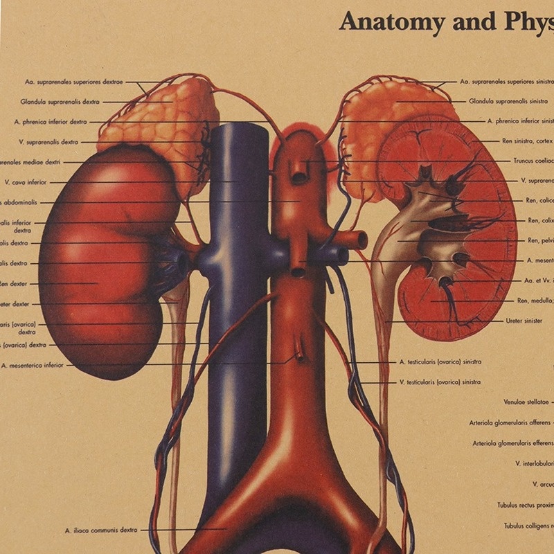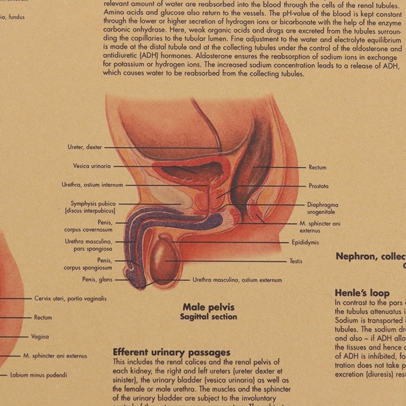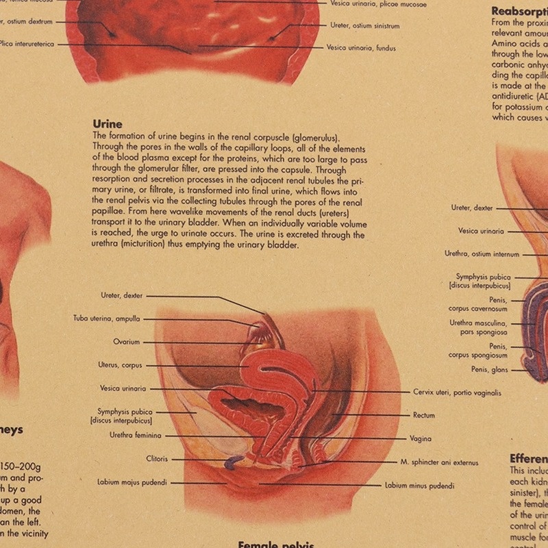 Human Urinary Tract System Kraft Paper Wall poster Vintage Style Wall Sticker Home Bar Cafe Classroom Painting 50.5*35CM
