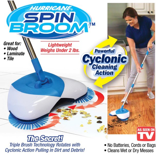 Hurricane Spin Broom Cordless Triple-Brush Cyclonic Sucking Without Electricity