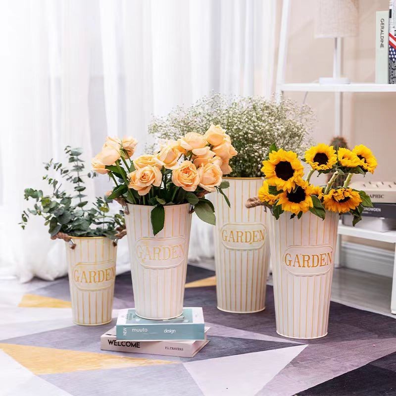 Hw American Tin Flower Bucket Flower Bucket Flower Shop Creative Flower Arrangement Bucket Living Room Dried Flowers Fake Flowers Decorative Bucket Household Flower Bucket k