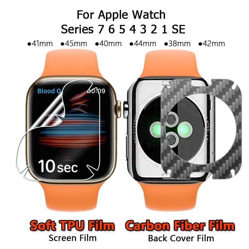 Hydrogel Screen Protector For Apple Watch Series 9 8 3 4 5 6 7 SE 38mm 40mm 41mm 42mm 44mm 45mm Carbon fiber Sticker back film for iwatch