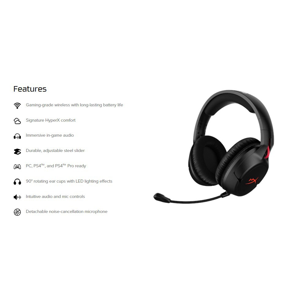 HyperX Cloud Flight - Wireless Gaming Headset, Long Lasting Battery up to 30 Hours, Detachable Noise Cancelling Microphone, Red LED Light, Comfortable Memory Foam