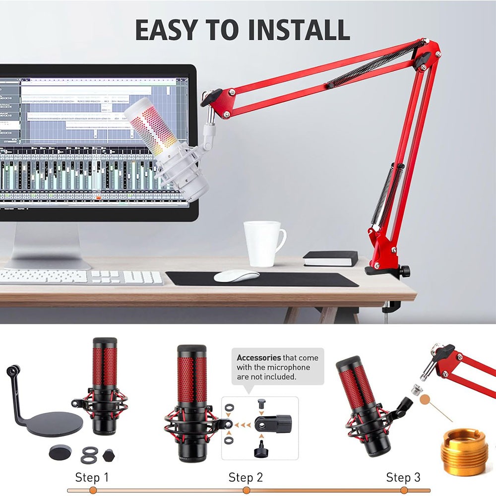 Hyperx Quadcast Microphone Stand with Pop Filter - Scissor Mic Boom Arm Mask Shield Windscreen Compatible with Quadcast S USB Gaming Mic