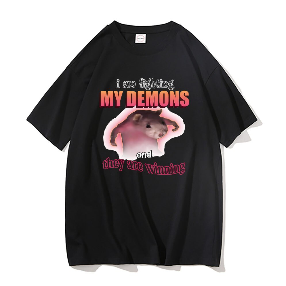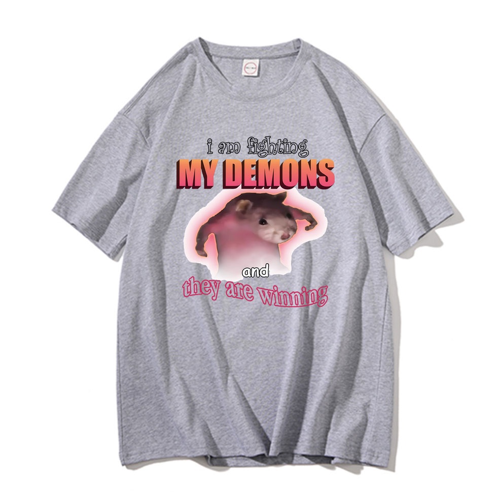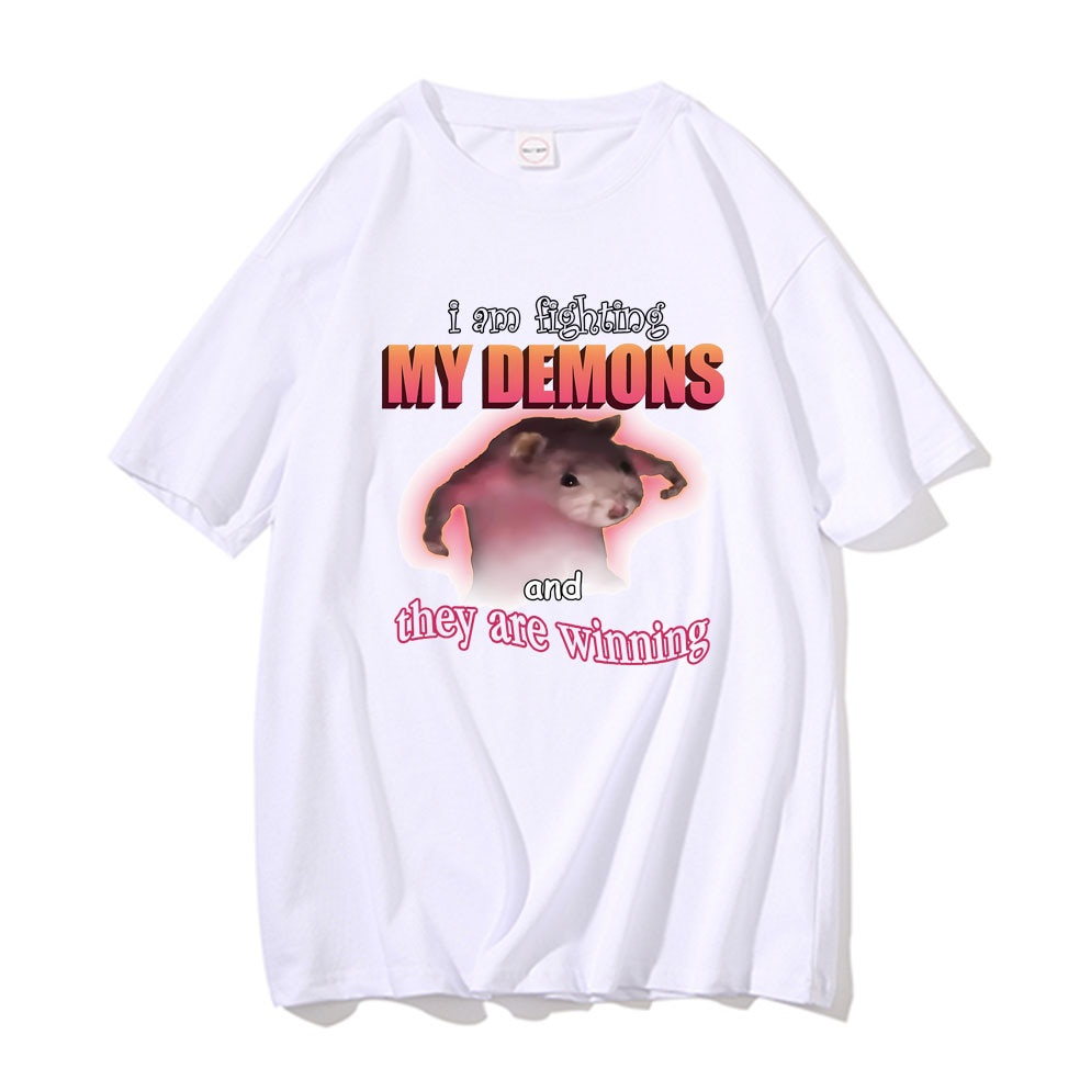 I Am Fighting My Demons And They Are Winning T Shirts Loose Tshirt Cute Kawaii Mouse Meme Graphic