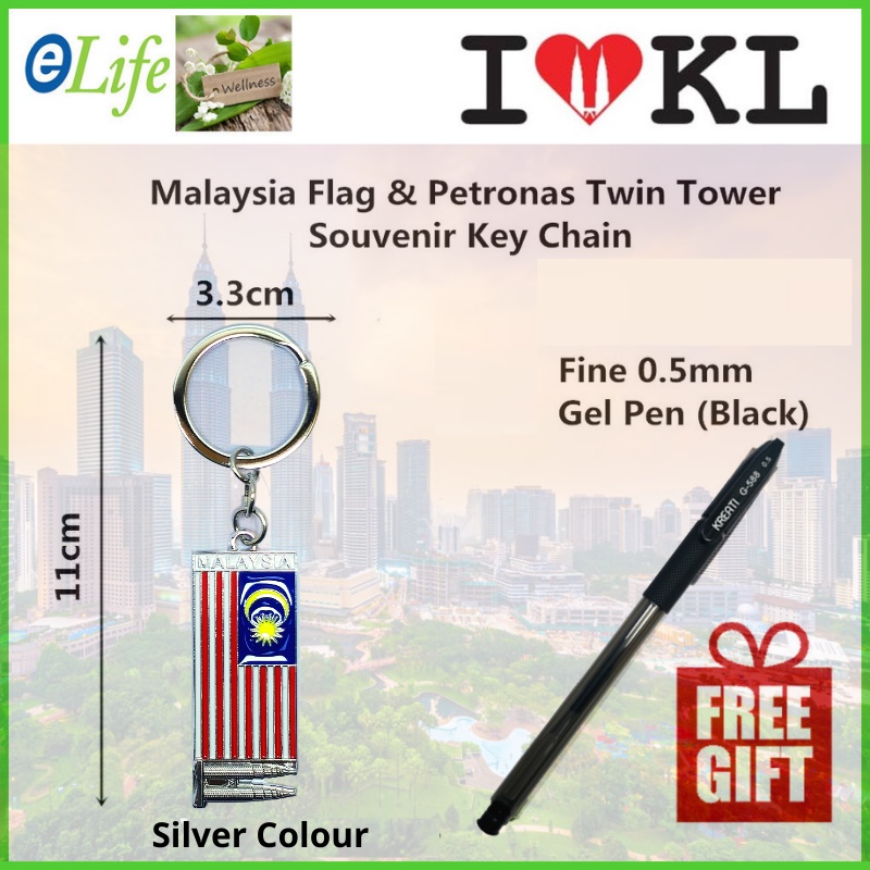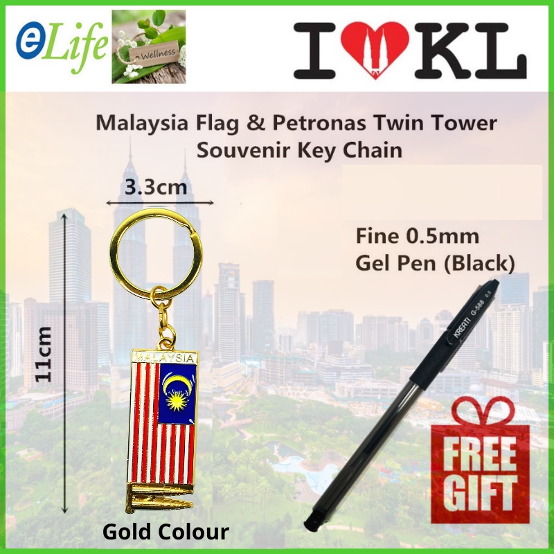I Love KL Malaysia Flag Souvenir Key Chain Gold/Silver (840393) FREE 1 Gel Pen Best Malaysian Gift Cenderahati t
