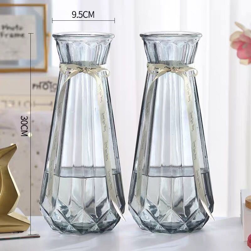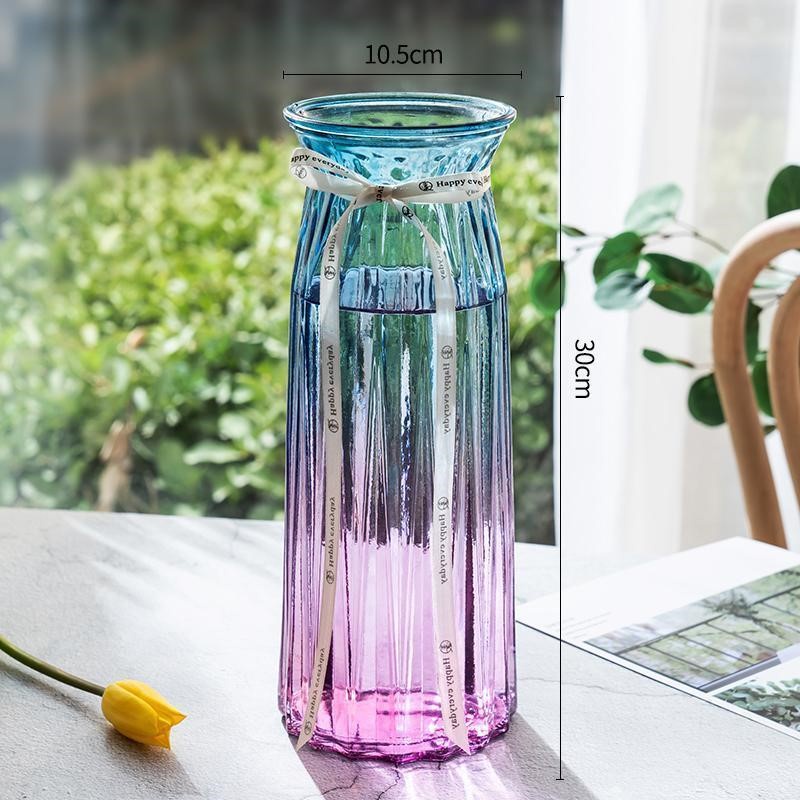 I pasu kaca yang sangat besar, air tebal, menanam pasu buluh hijau dan kaya, bunga lili, hiasan, ruang tamu UUJUJ