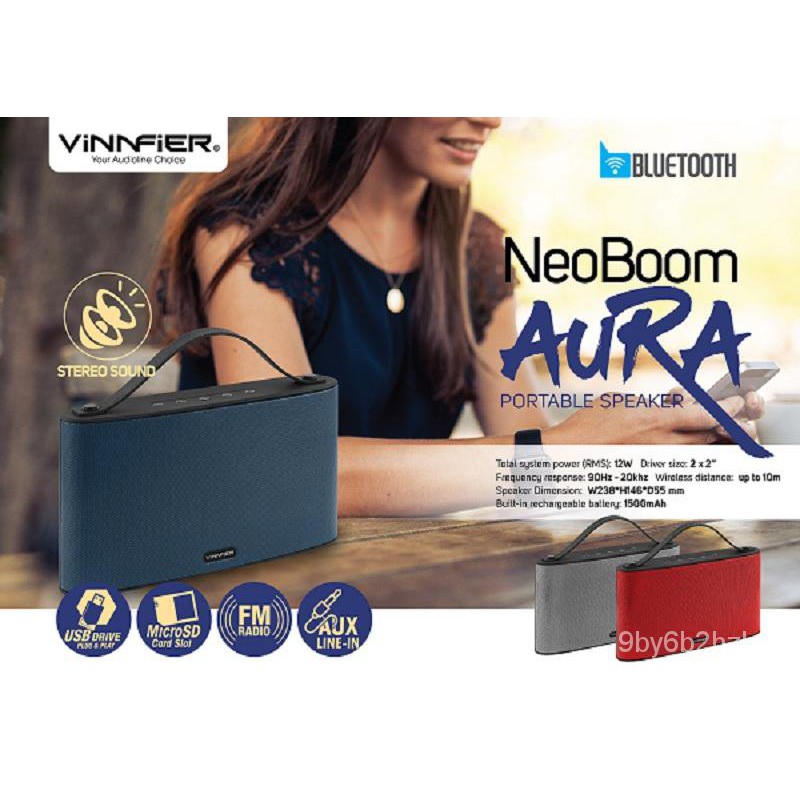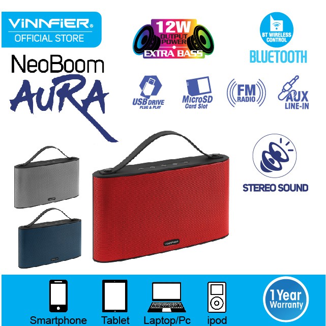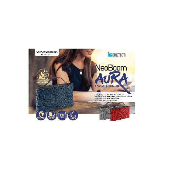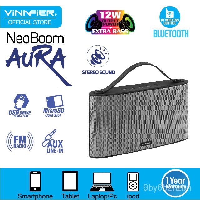 I5zG Vinnfier Neo Boom Aura TWS Wireless Portable Bluetooth Speaker with USB Drive Micro SD Slot FM Radio and Built in