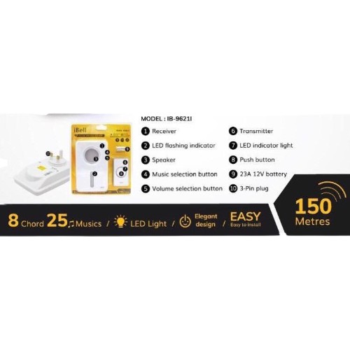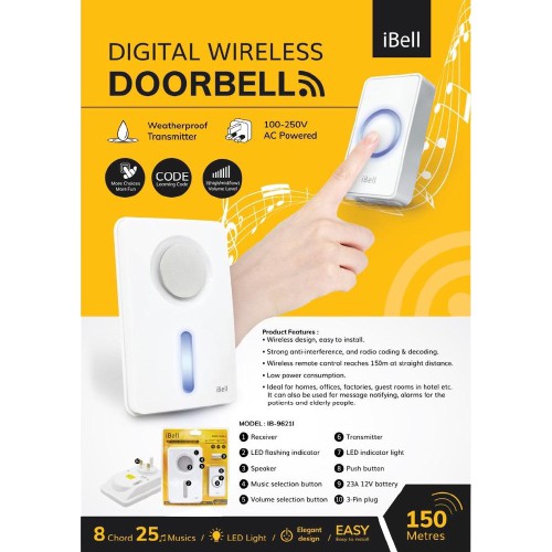 IBELL Digital Wireless Doorbell IB-9621I (Battery operate)
