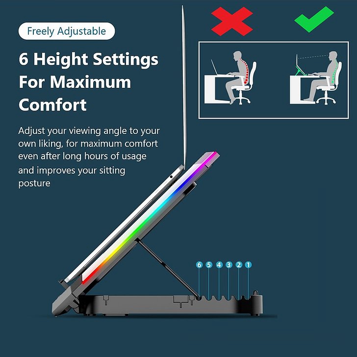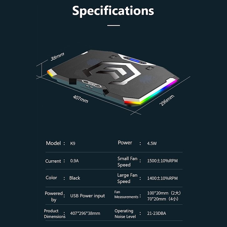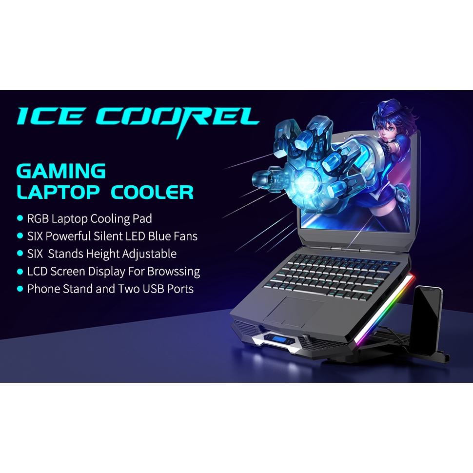 ICE COOREL K9 RGB GAMING LAPTOP COOLER PAD PHONE HOLDER ADJUSTABLE HEIGHT 7 FANS (12 to 21 inch)
