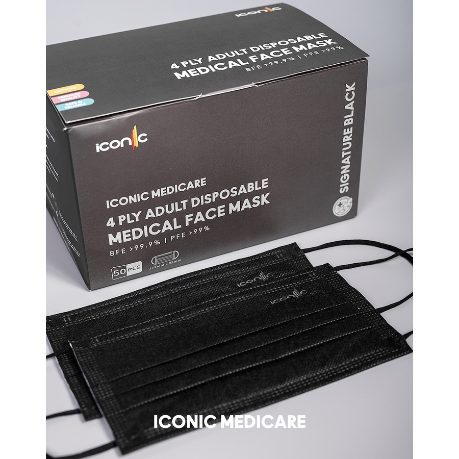 ICONIC SIGNATURE BLACK 4PLY Adult Face Mask 50's/BOX