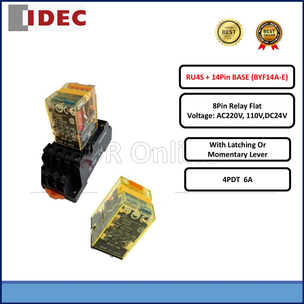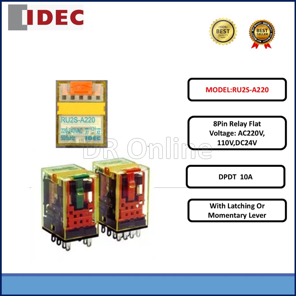 IDEC 8PIN RELAY FLAT DPDT STANDARD TYPE ~ 24VDC /110VAC / 220VAC RU2S SERIES