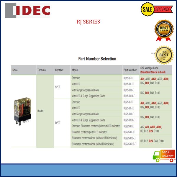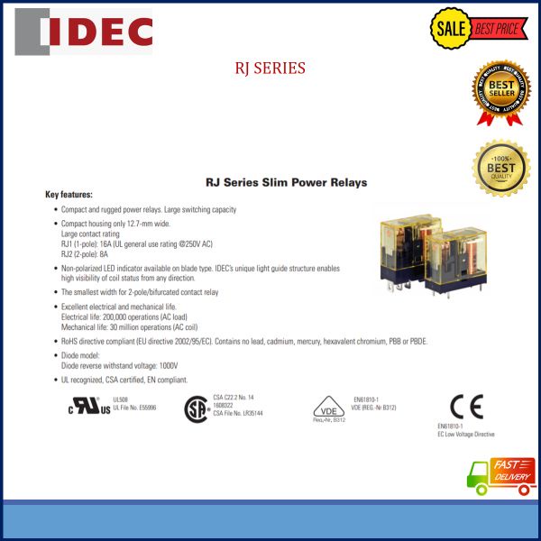 IDEC Relay 8Pin and 5PIN Flat With Led Indicator AC230 /24VDC RJ2S-CL / RJ1S-CL