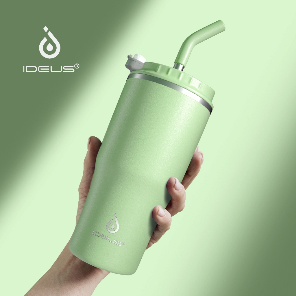 IDEUS 【2 Caps】Insulated tambler Leakproof Travel Coffee Tumbler Double Wall Stainless Steel Vacuum Coffee Cup with Straw