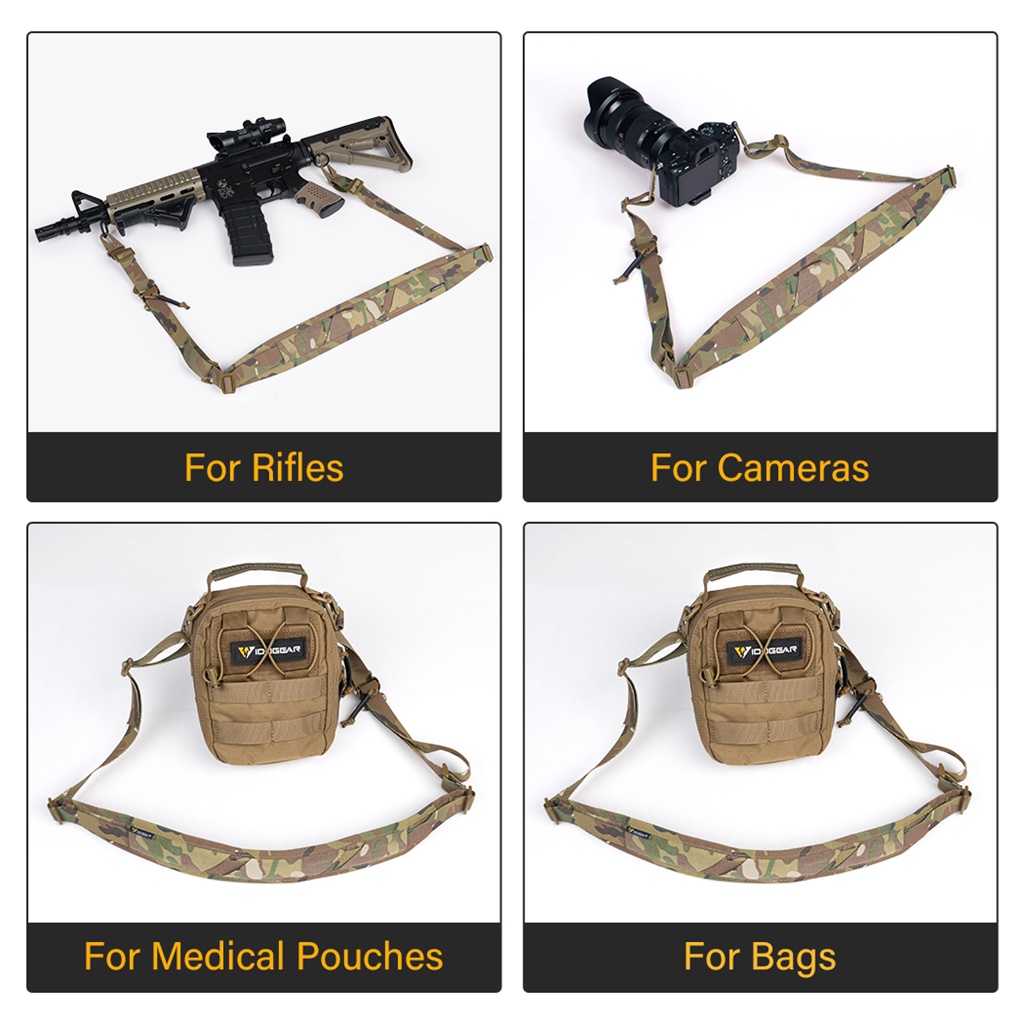 IDOGEAR 2 Point Tactical Gun-Slings Safety Sling Quick Adjust Padded Buckle Military Combat 2 Point Shoulder Strap Camera Slings Adjustable 3428 Military Multicam Black Pouches