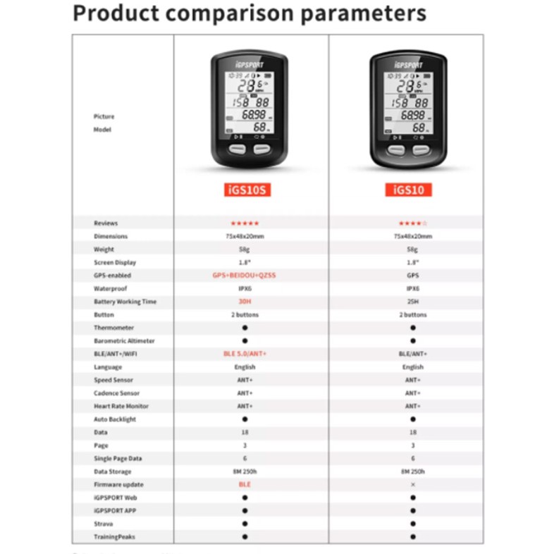 IGPSPORT iGS10S Bike Computer Wireless GPS Speedometer Bluetooth 5.0 IPX6 Waterproof Smart ANT+ Cycling Speedometer