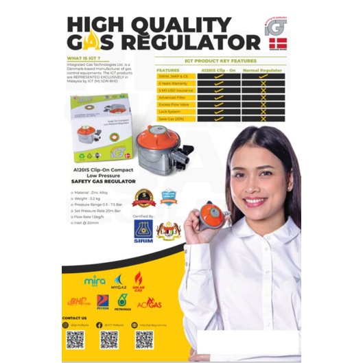 IGT Gas Regulator With SAFETY LOCK / with 1.5M SAFETY GAS HOSE