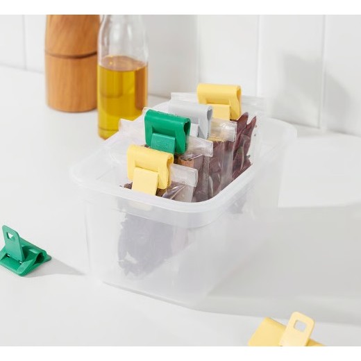 IKEA BEVARA Sealing clip, Pour Bag Clip, white, mixed colours, anthracite/dark yellow, klip pengedap