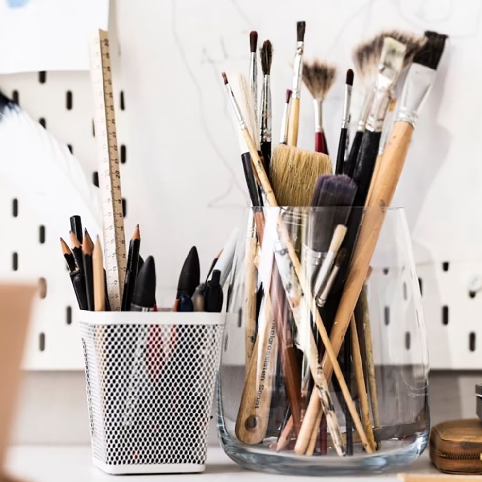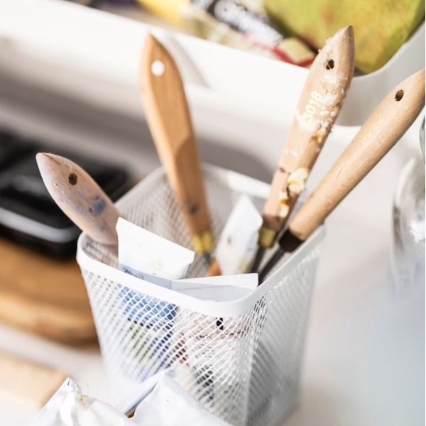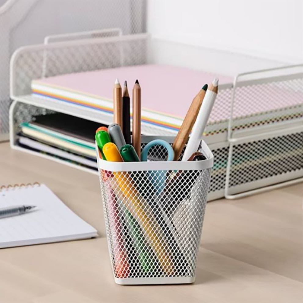 IKEA Dronjons White Mesh Pen Cup Container 10cm