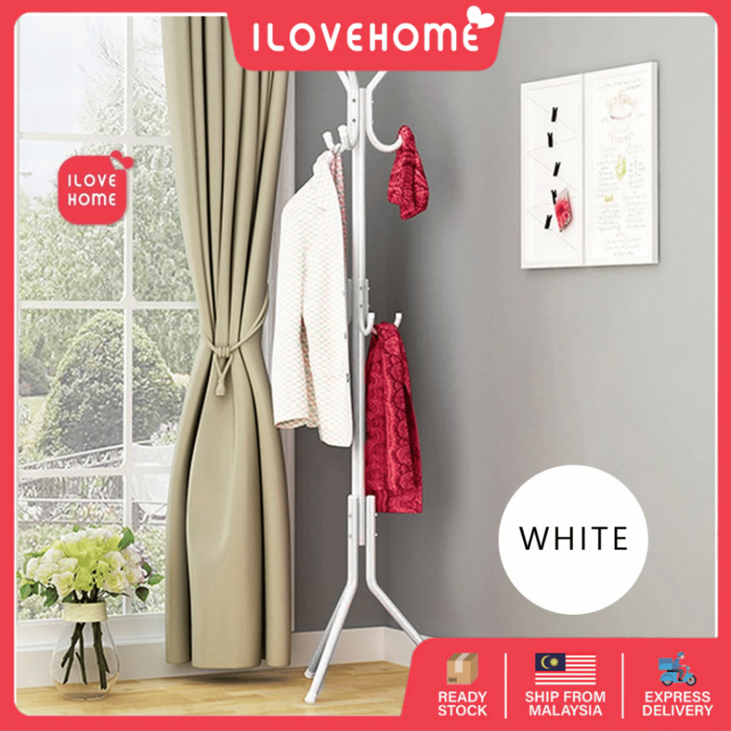 ILOVEHOME 12 Hooks Metal Cloth Hanger Multi Purpose Hanging Pole Stand
