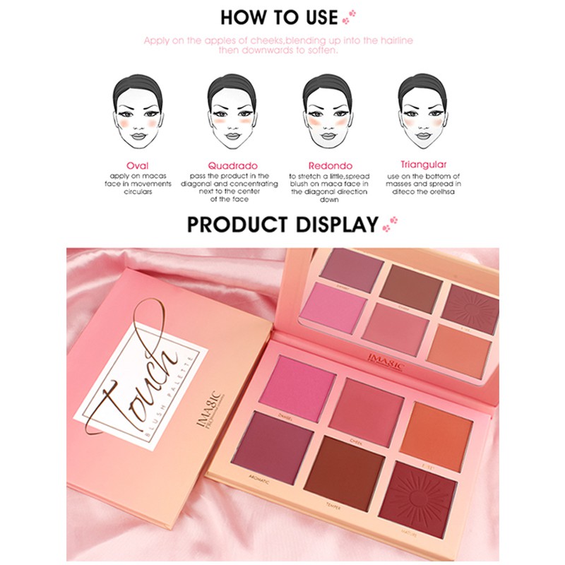 IMAGIC Blush Palette 6 Color Blush On Palette Nude Natural Colors for Enlightening