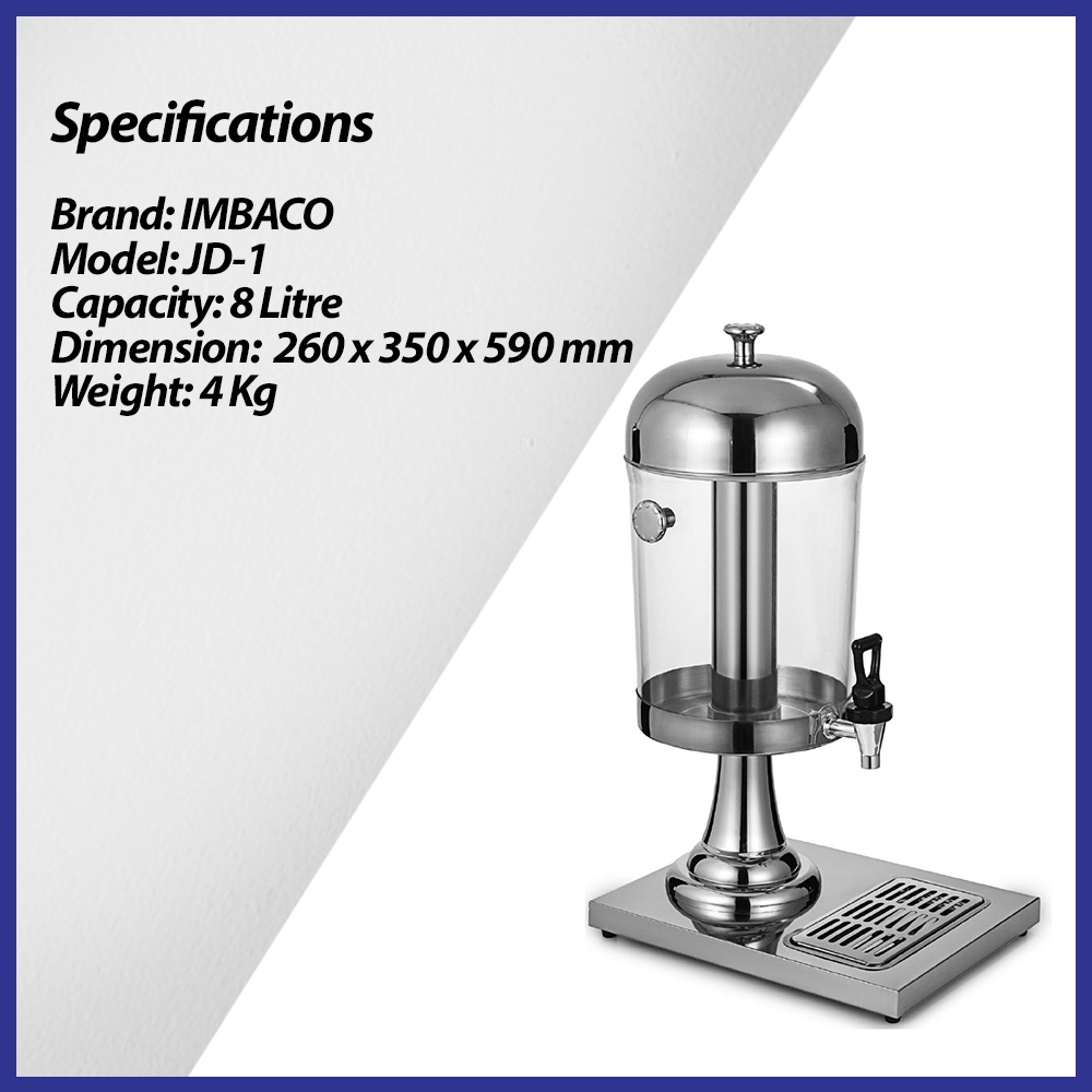 IMBACO Commercial Juice Dispenser 8 LITER Stainless Steel Juice Dispenser With Ice Chamber Tong Jus Air 1 YEAR WARRANTY
