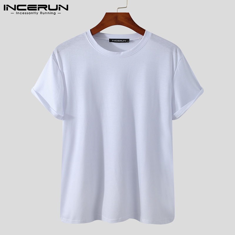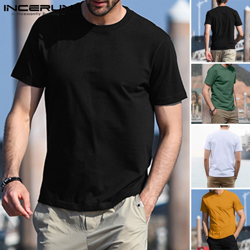INCERUN Men's 4 Colors Casual Short Sleeve Solid Color Round Neck Basic T-Shirts
