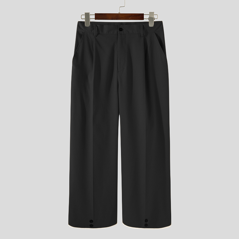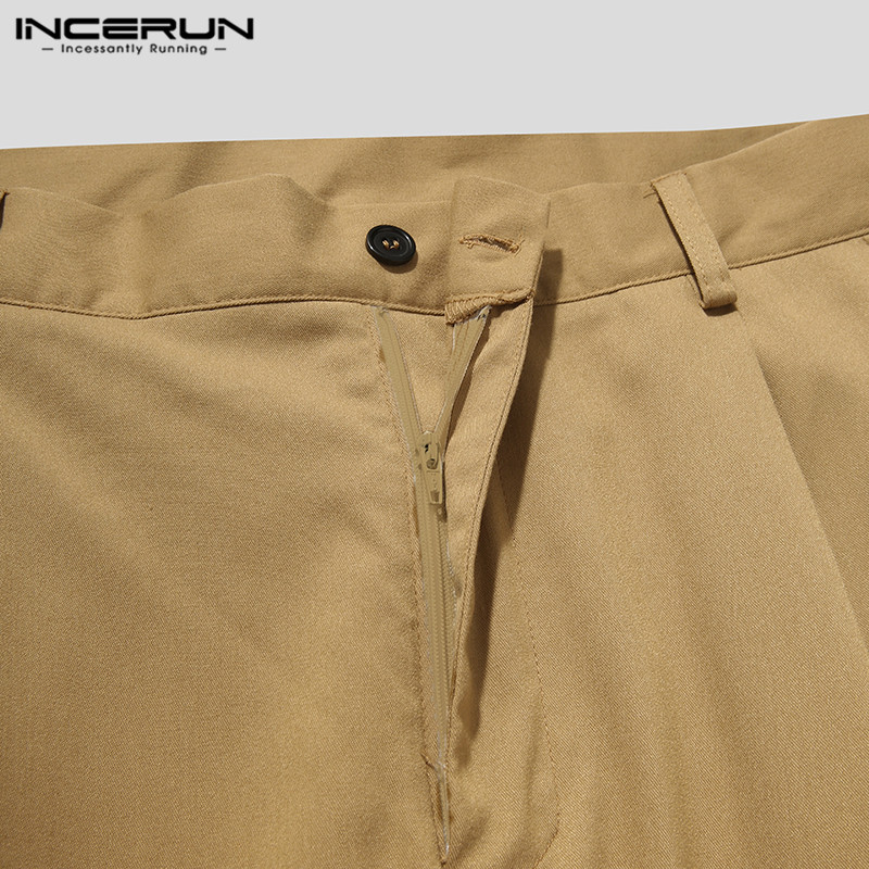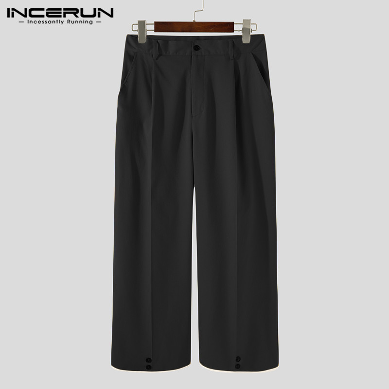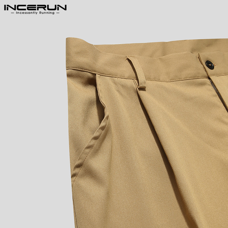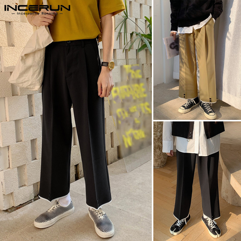 INCERUN Men's Fashion Casual Plain Elastic Waist Korean Style Straight Pants