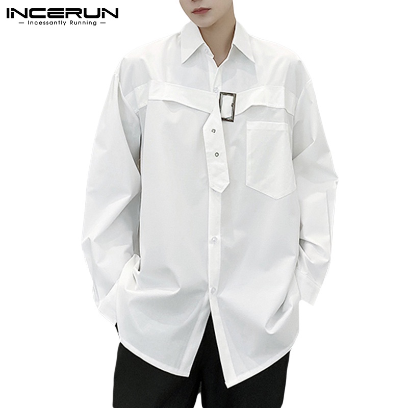 INCERUN Men's Japanese Style Fashion Long Sleeve Solid Color Lapel Casual Tops