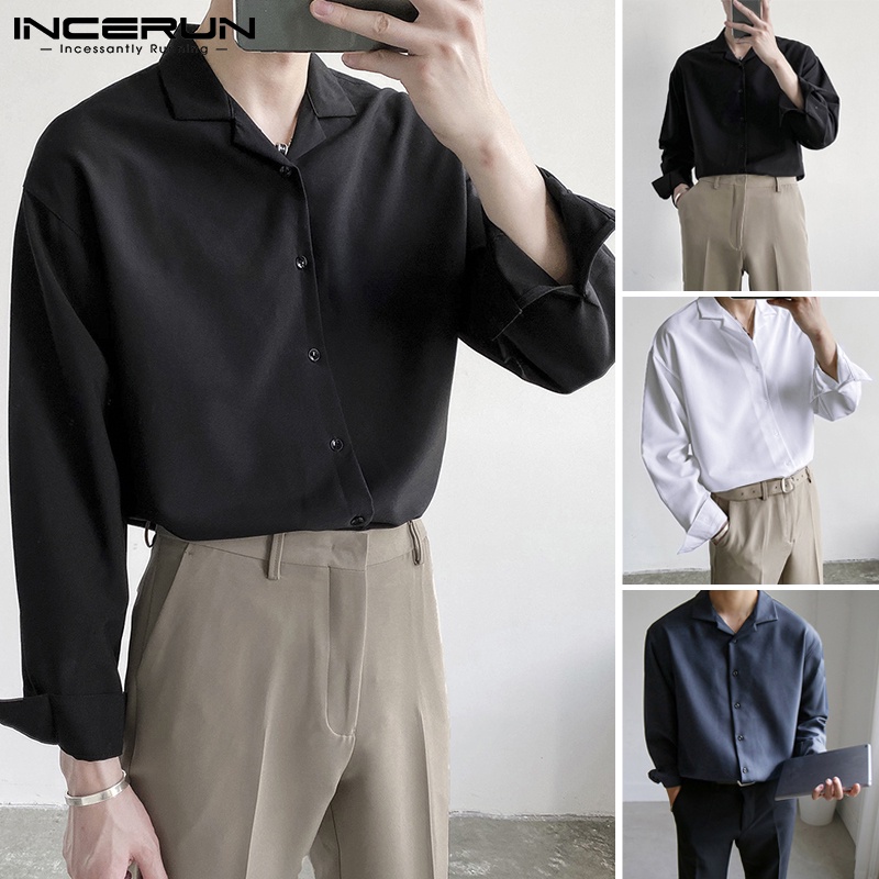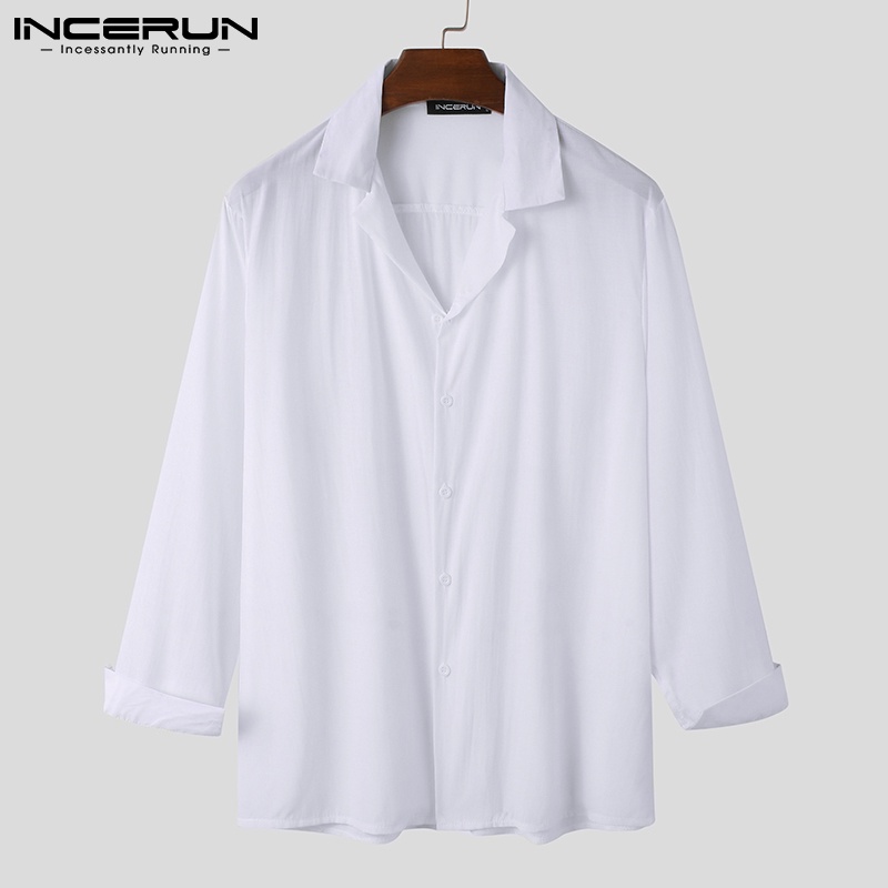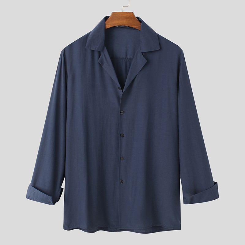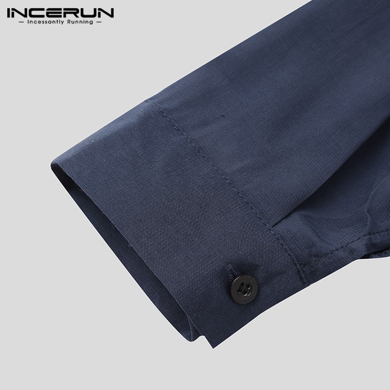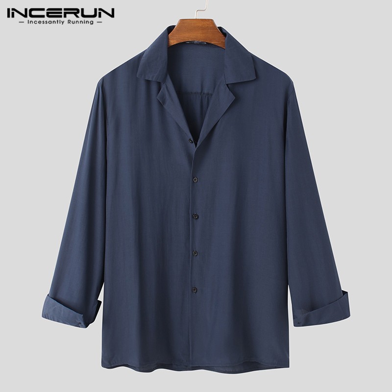 INCERUN Men Casual Plain Long Sleeve Lapel Gentleman Simple Shirt