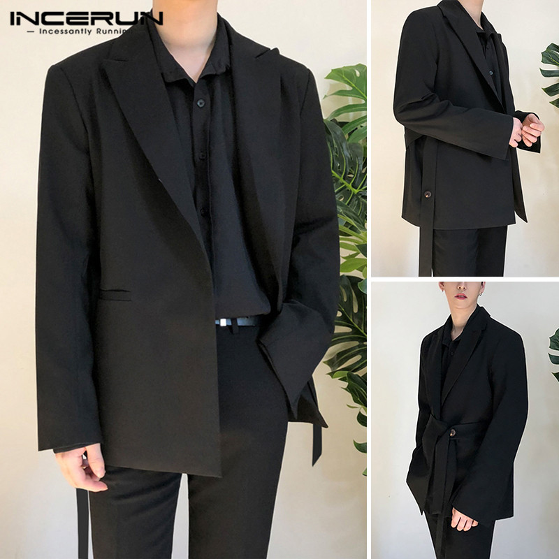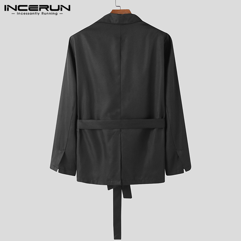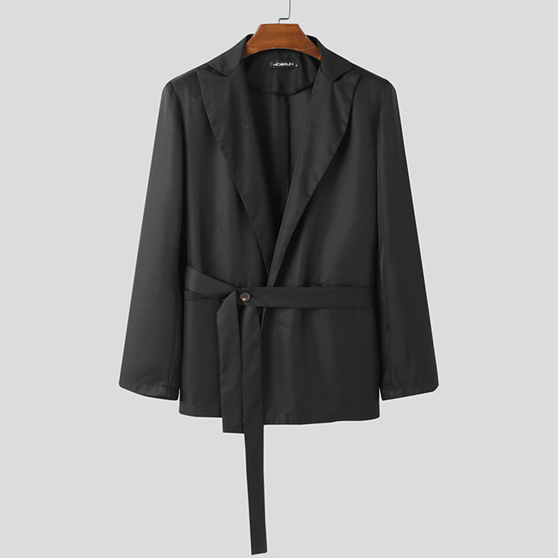 INCERUN Men Fashion Long Sleeve Black With Belt Loose Casual Blazer