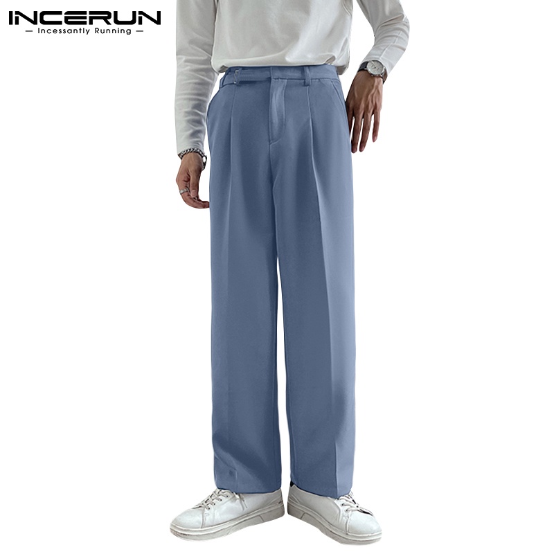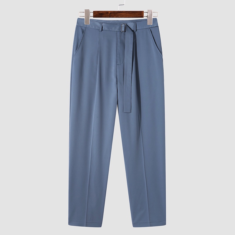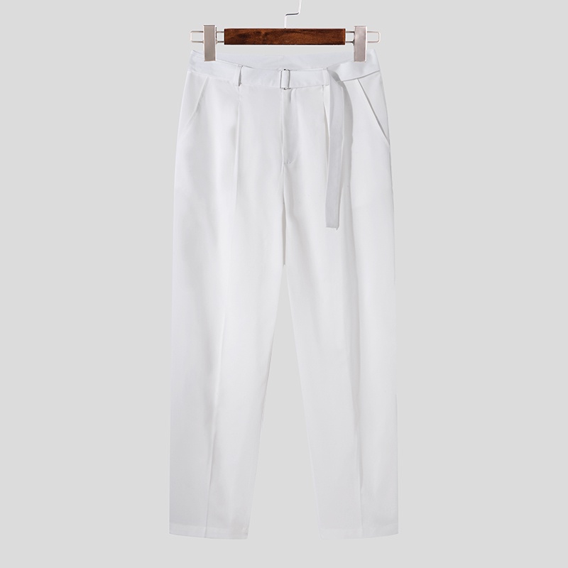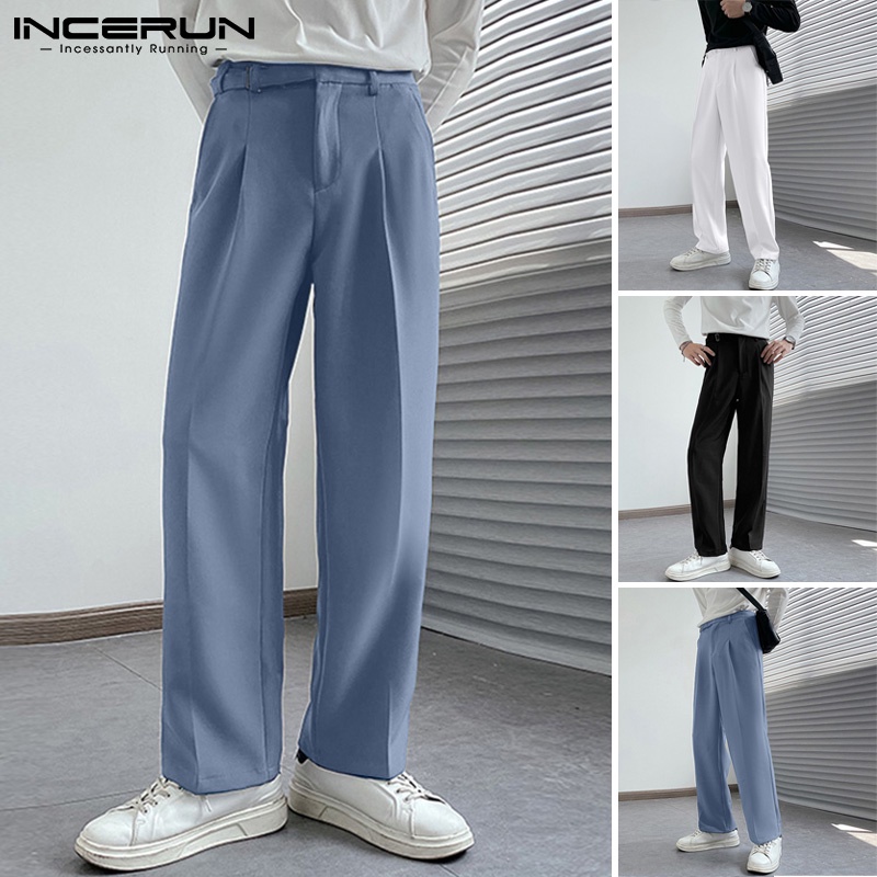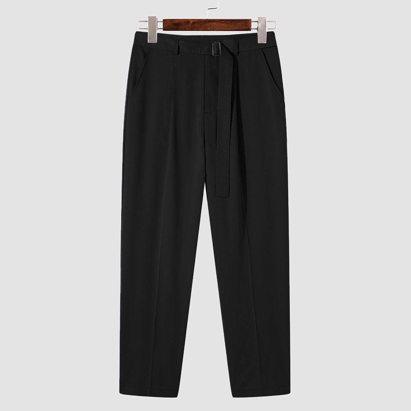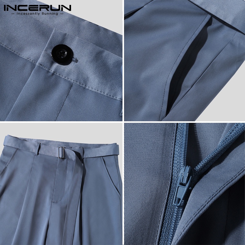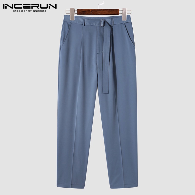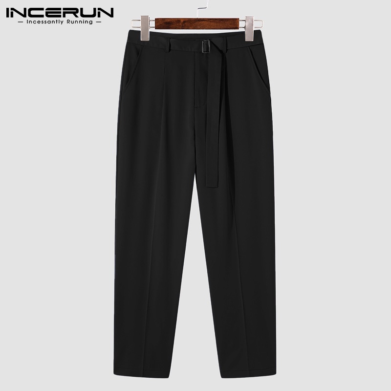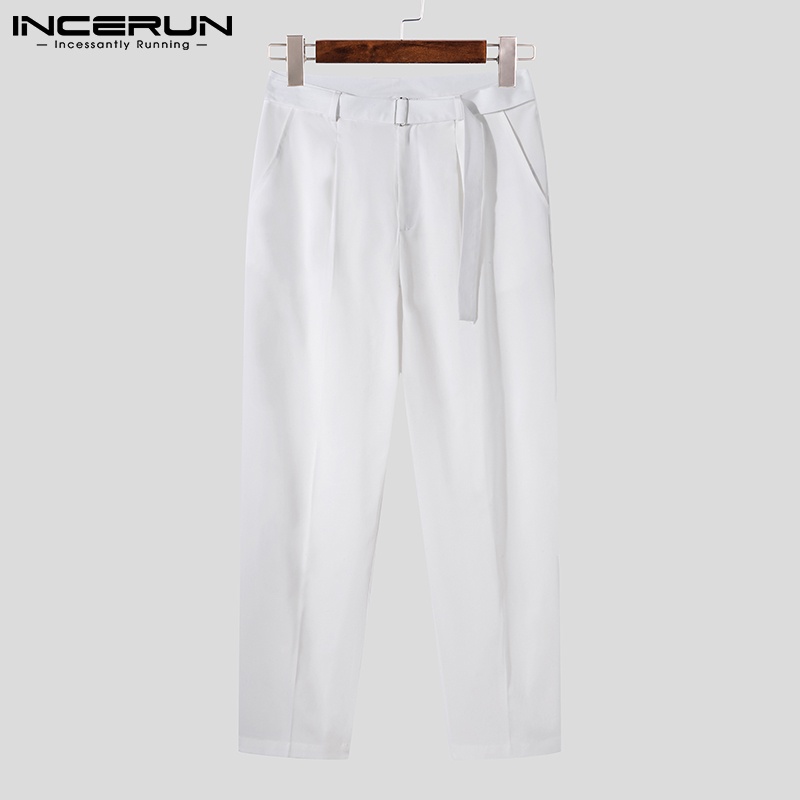 INCERUN Men Korean Style Fashion High Waist With Belt Casual Straight Long Pants