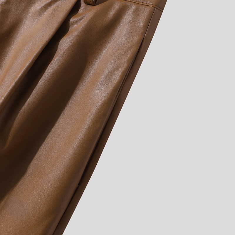 INCERUN Men Korean Style Fashion Wide Leg Baggy Straight Leather Long Pants