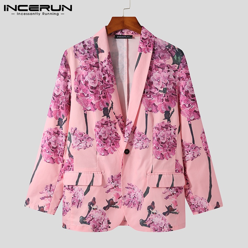 INCERUN Men Western Style Fashion Floral Printed Long Sleeve Turn-down Collar Blazer