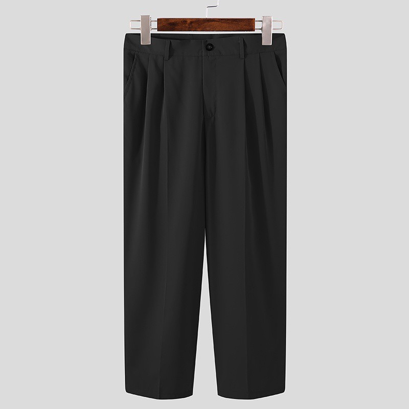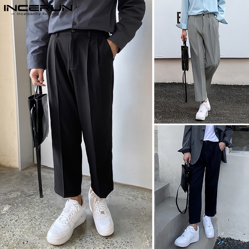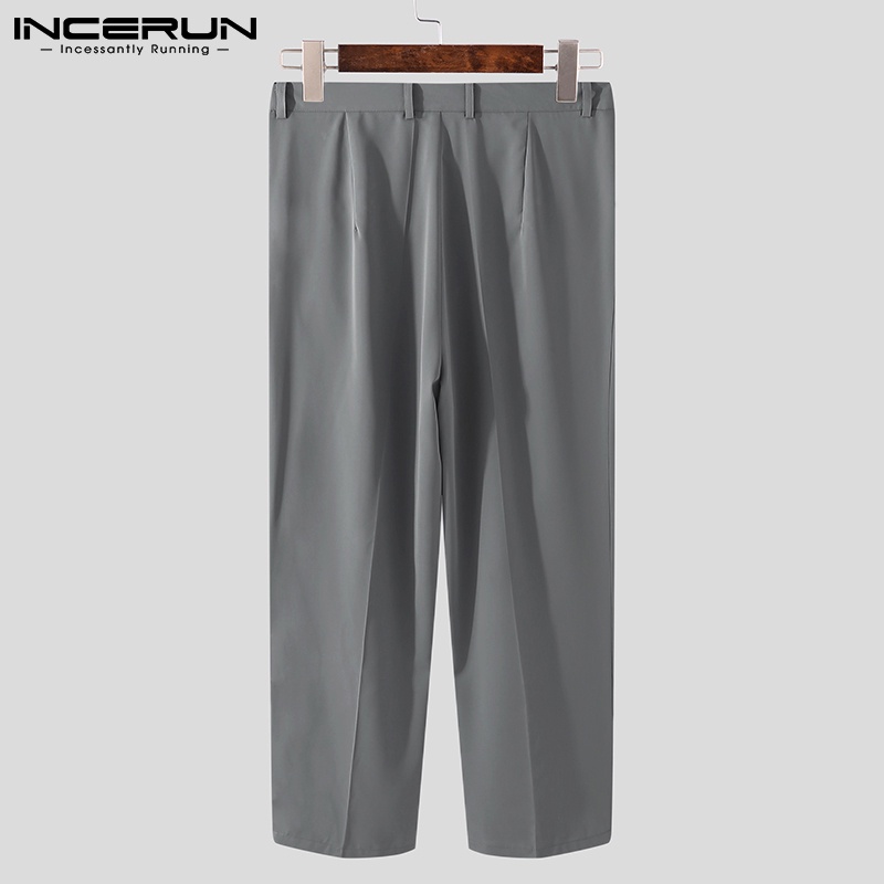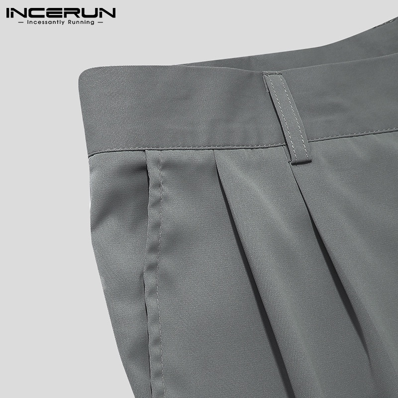 INCERUN Mens Fashion Korean Style Solid Color Elasticated High Waist Pants