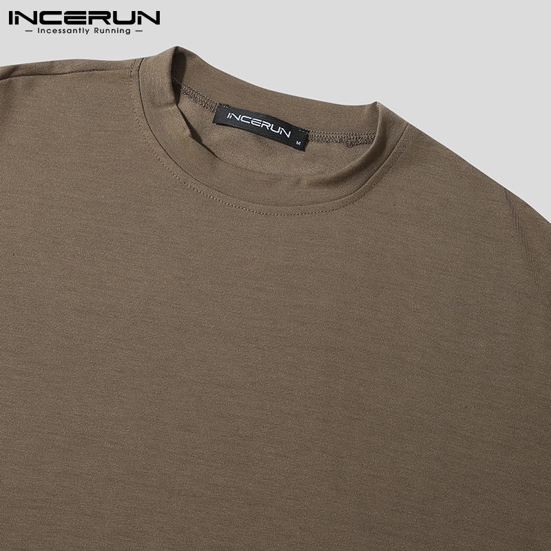 INCERUN Mens Korean Style Leisure Solid Color Short Sleeve Basic T-Shirt