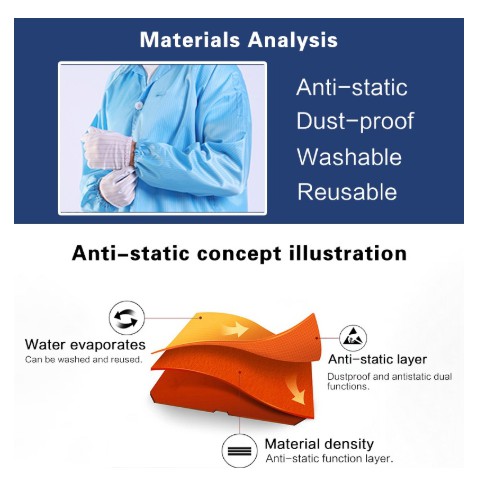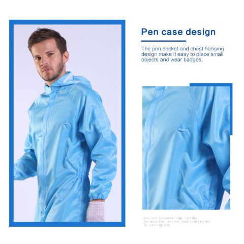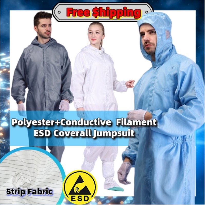 INDX1004 (Ready Stock) ESD Jumpsuit Washable Cleanroom PPE Coverall Reusable Anti Static Overall Jumpsuit Cleanroom ESD Suit