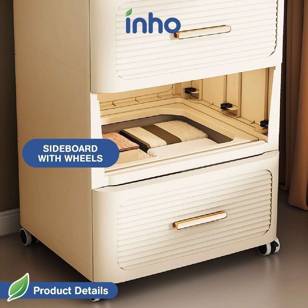 INHO L35-55cm (3-6 Layers) Multipurpose Moveable Plastic Drawer Cabinet Storage Box With Pulley