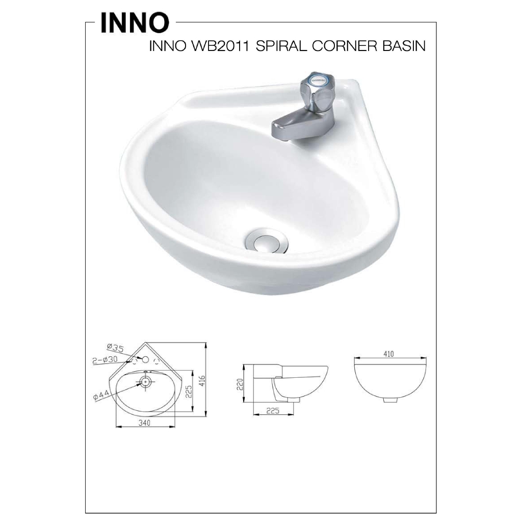 INNO SPIRAL CORNER WALL HUNG WASH BASIN (WHITE)