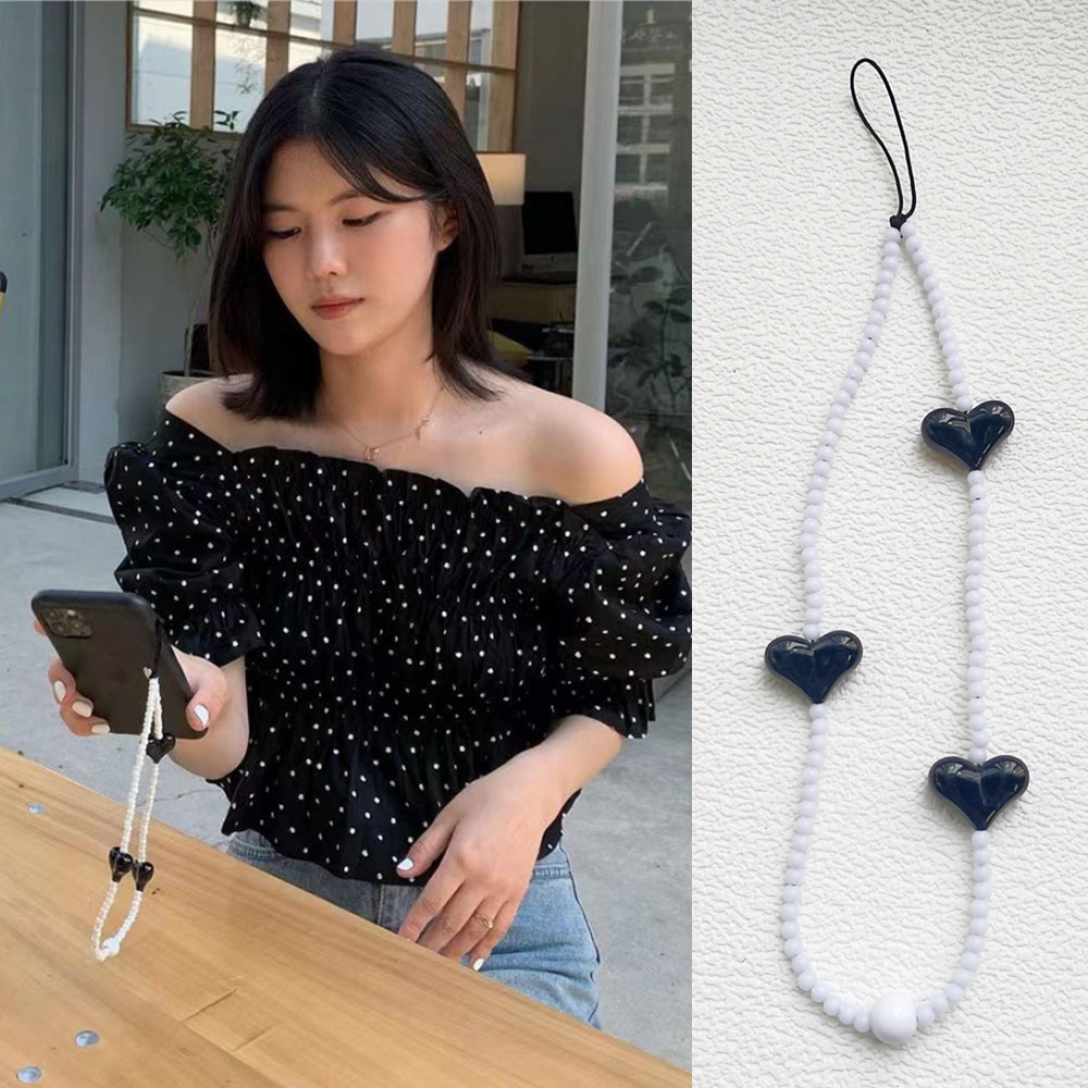 INS Blackpink Jennie Same Style Pink Love Mobile Phone Chain Anti-Lost Rope Strap Lanyard Pearl Acrylic Bead Colorful Cell Phone Case Hanging Cord AO1226