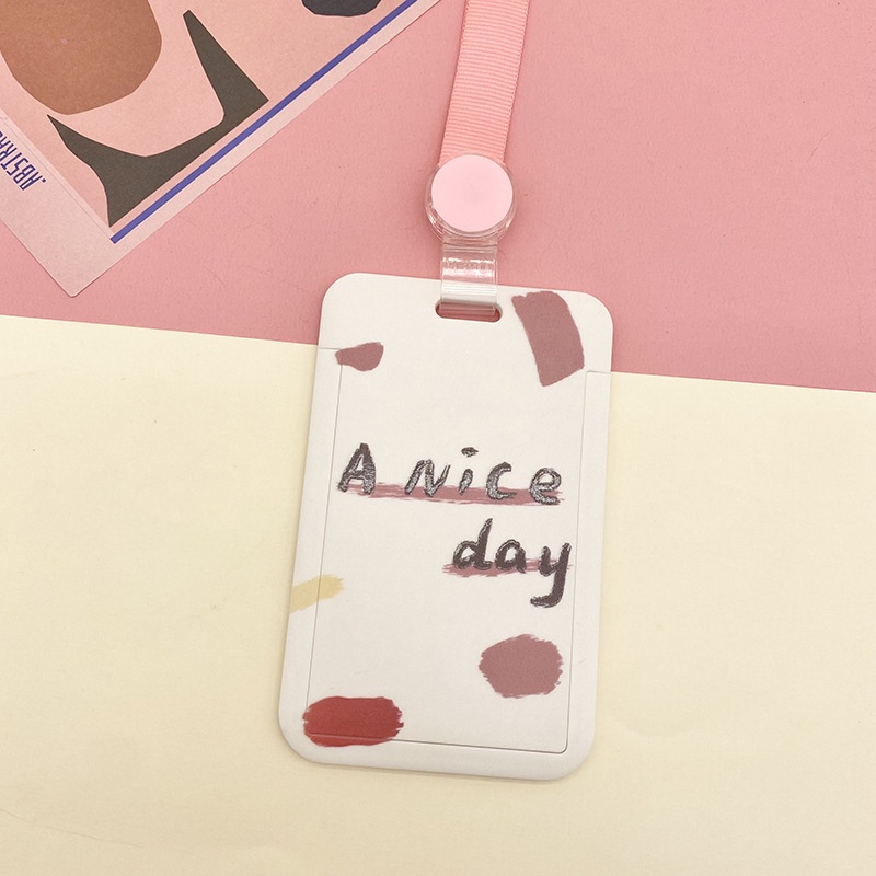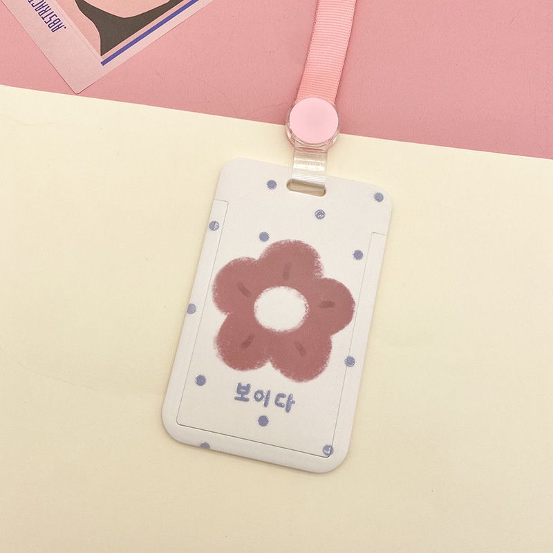 INS Cartoon Slide Cover Design Retractable Rope Easy-to-pull Buckle Card Cover ID Card Cover Name Tag Trend Card Cover