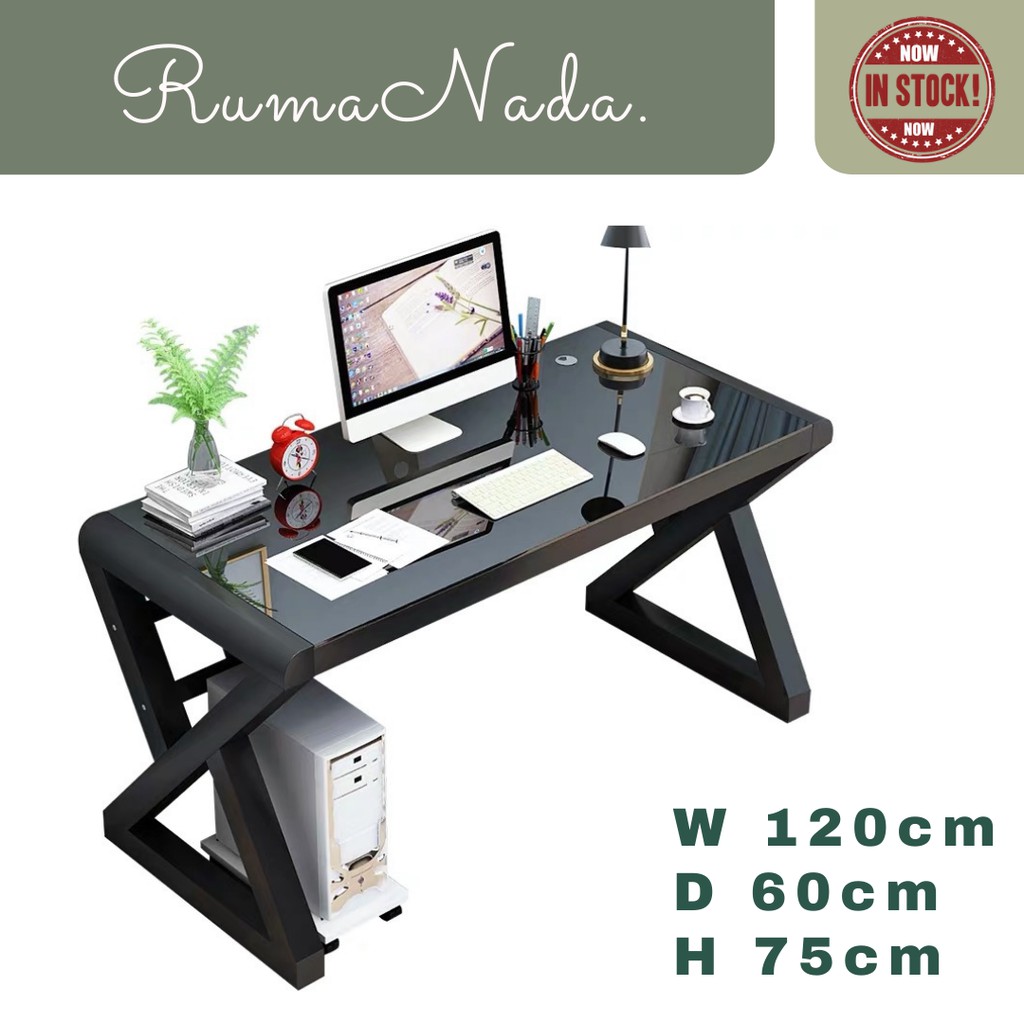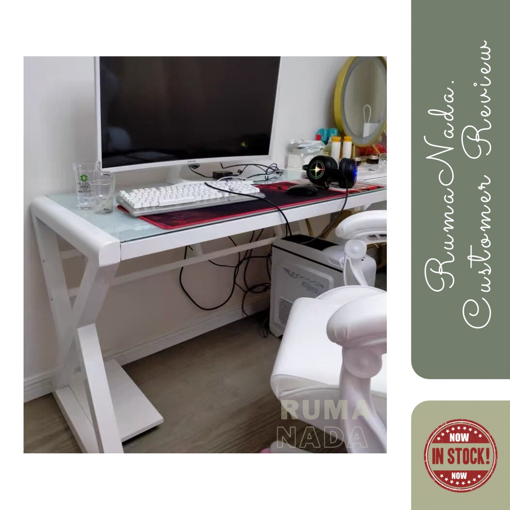INS Tempered Glass Computer Desk / Gaming Table / DIY Dressing Table / Working Table / Meja Tulis / Meja Komputer / Meja