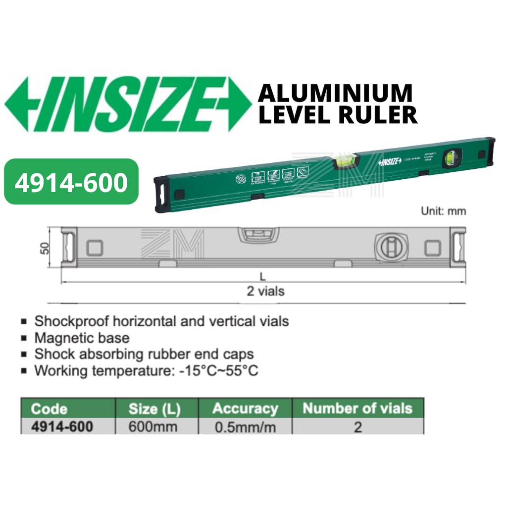 INSIZE 300mm/ 600mm/ 800mm Aluminium Spirit Level Ruler Measurement Magnetic Base Magnet(4914-300) (4914-600) (4914-800)
