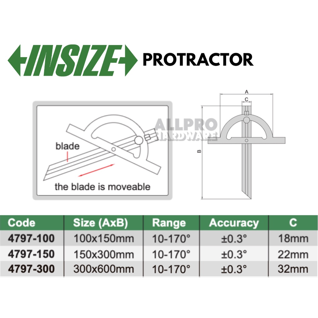INSIZE 4797 Protractor Angle Ruler Movable Blade 100x150mm (4797-100) 150x300mm (4797-150) 300x600mm (4797-300)
