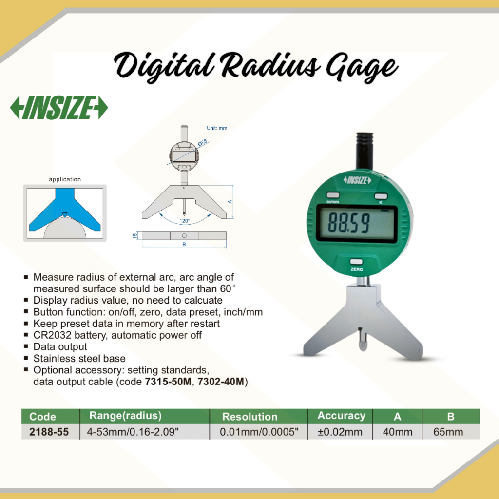INSIZE Digital Radius Gage Radius Gauge | 2188-55 ( Radius Range : 4-53mm/0.16-2.09")