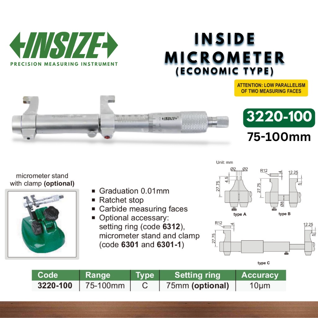 INSIZE Inside Micrometer Internal Diameter Measuring Internal Measuring (25-100mm)