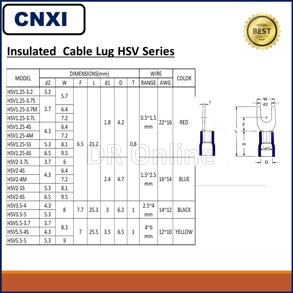 INSULATED Cable Y Lug FORK Terminal HSV Series 0.5mm-1.5mm/2.5mm/4mm/6mm ( 20Pcs/Pkt) Ready Stock