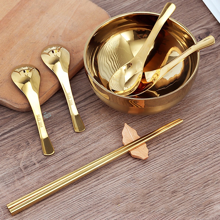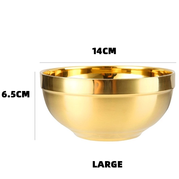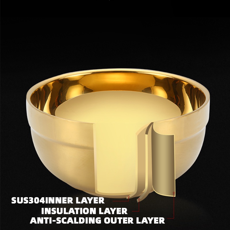 INTERNAUL 304 Stainless Steel Gold Bowl Thickened Double Chinese New Year Insulation Bowl Kitchen Cooking Set CNY Gift Tableware Golden chopsticks Golden spoon Double Golden Rice Bowl