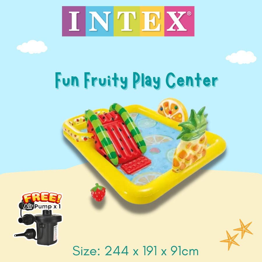 INTEX 57158 Fun Fruity Inflatable Play Center Children Kids Swimming Pool With Slide Playground (244 X 191 X 91CM)